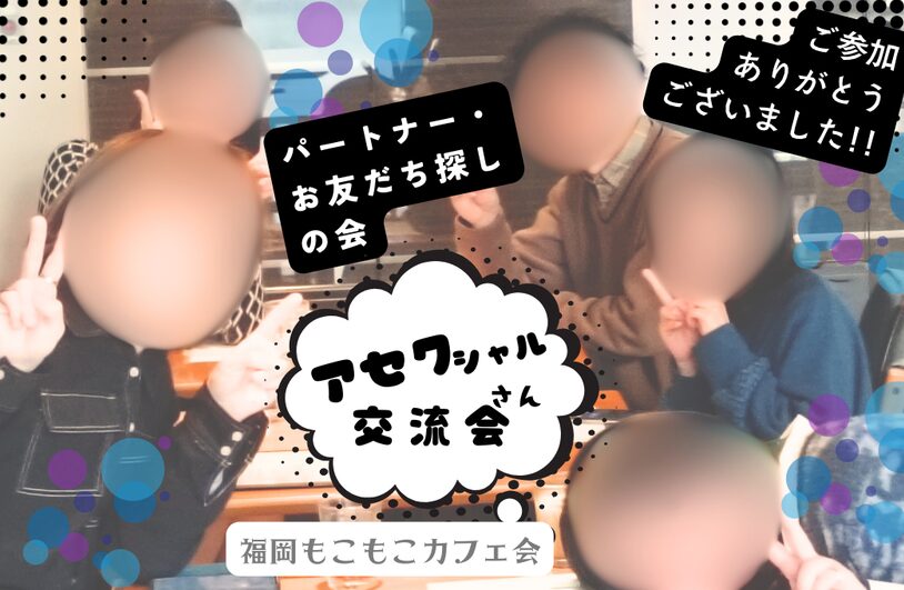 | 日程と開催場所 (お店名はご予約の方にのみお知らせ) | ★2/22(日)14:00※この日は『アセクシュアルさんのパートナー探し&友達探し会』で~す! いつもはただ「アセクシュアルさん集まれ~!交流会」というかんじですが。 天神のカフェ 性別不問 |
